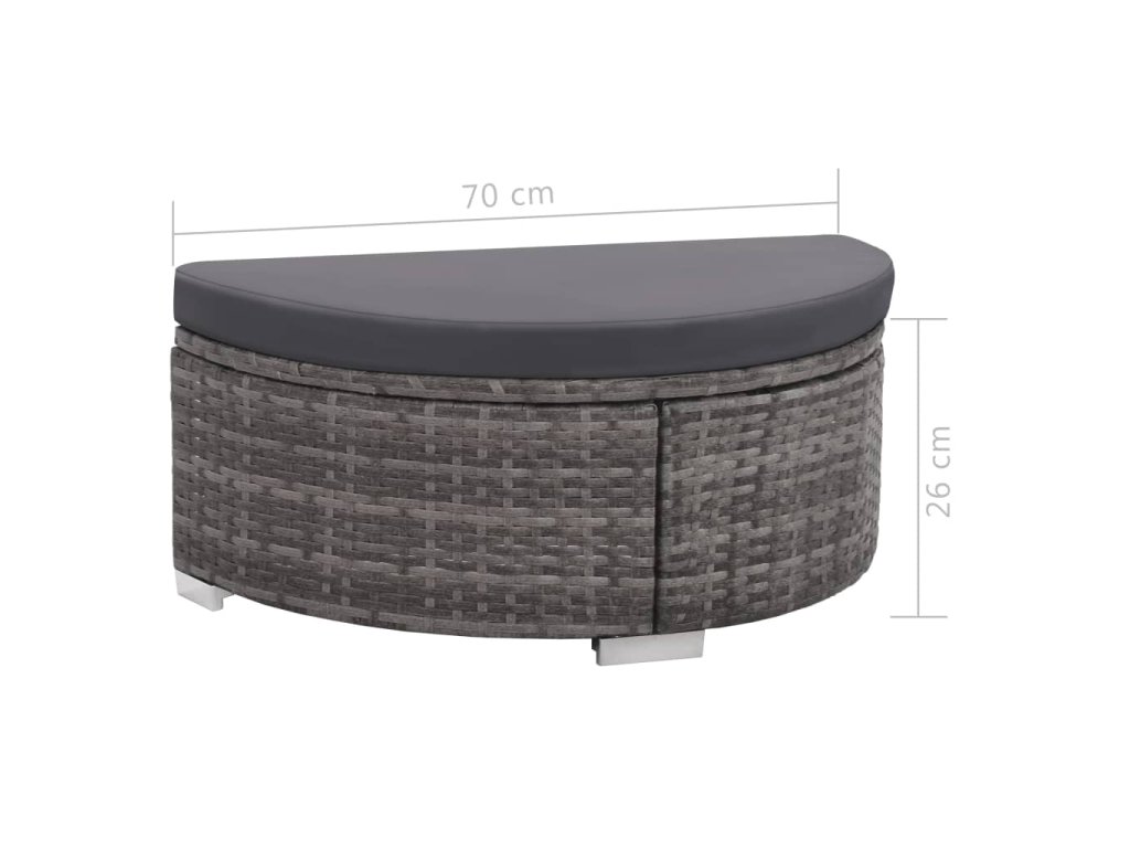 - Rozmery polkruhovej taburetky: 70 x 35 x 26 cm (Š x H x V)