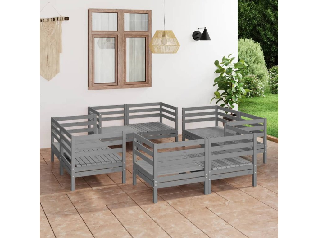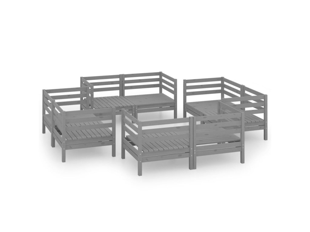 vidaXL 8-dielna záhradná sedacia súprava sivá borovicový masív