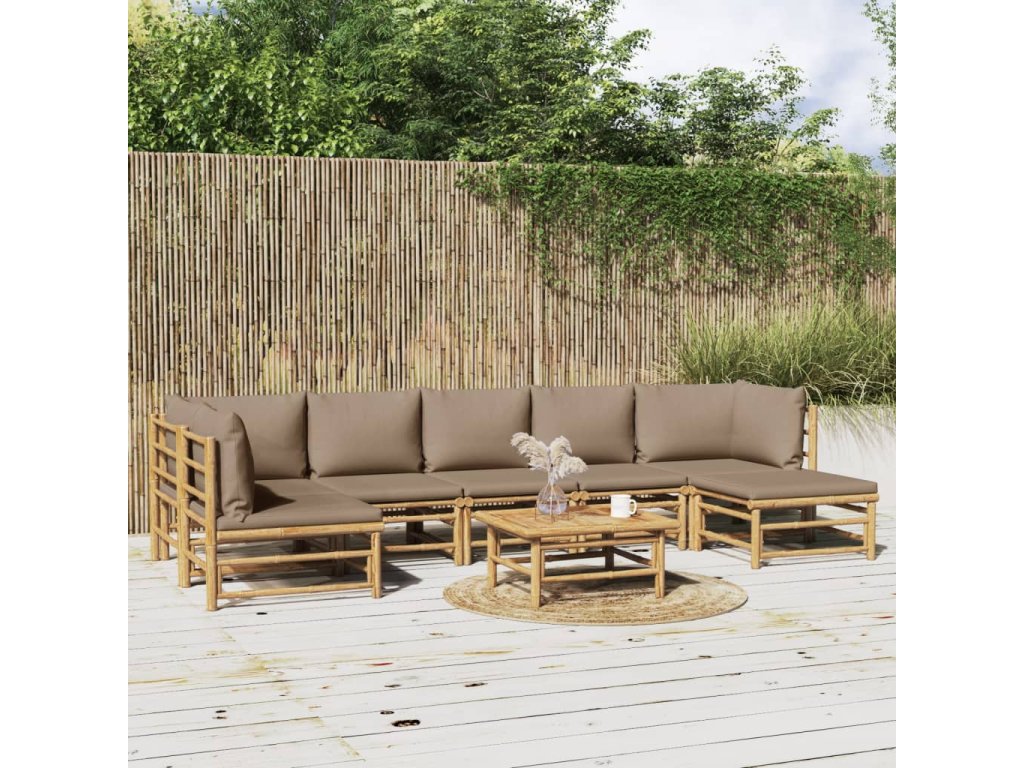 vidaXL 8-dielna záhradná sedacia súprava sivohnedé vankúše bambus