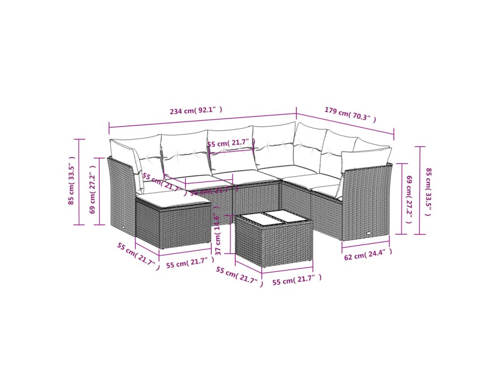 vidaXL 8-dielna záhradná súprava pohoviek s vankúšmi béžová polyratan
