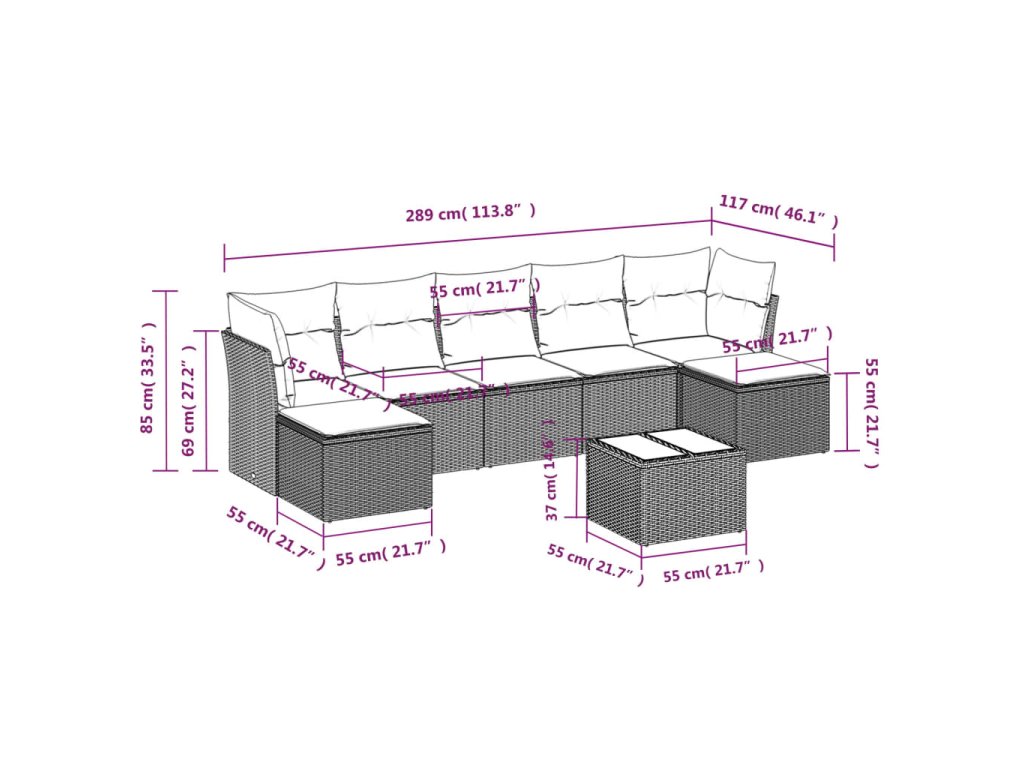 - Celkové rozmery pohovky: 289 x 117 x 69 cm (Š x H x V)