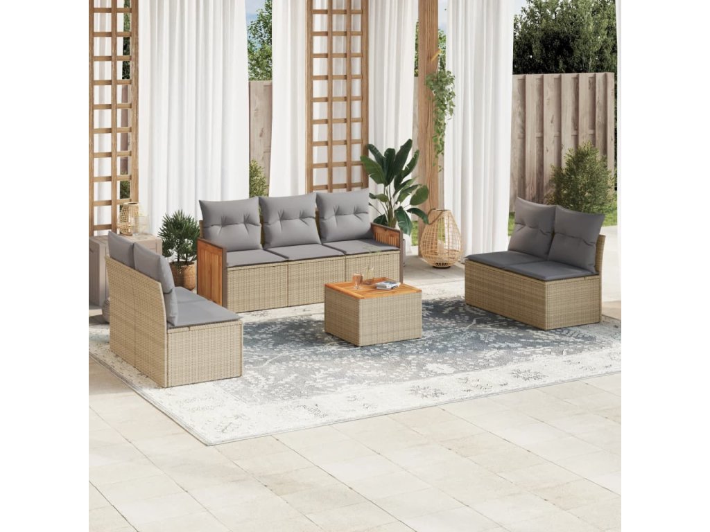vidaXL 8-dielna záhradná súprava pohoviek s vankúšmi béžová polyratan