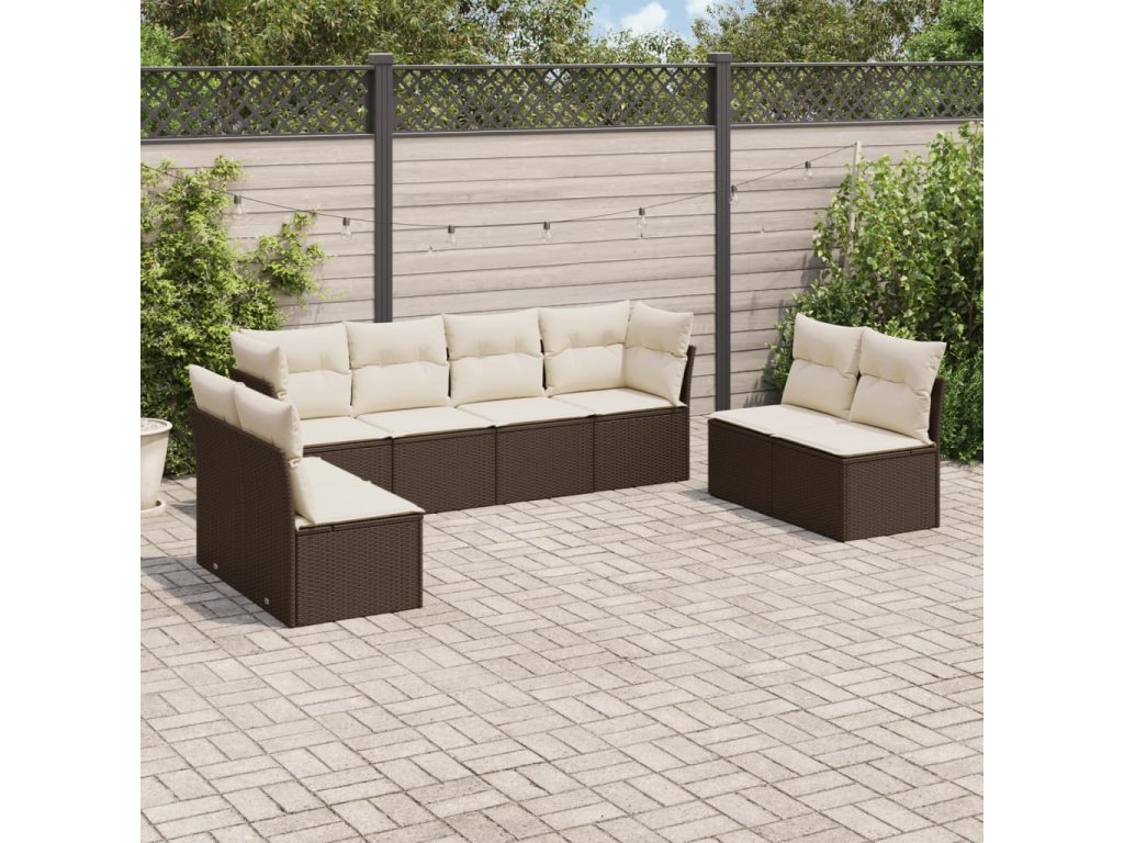 vidaXL 8-dielna záhradná súprava pohoviek s vankúšmi hnedá polyratan