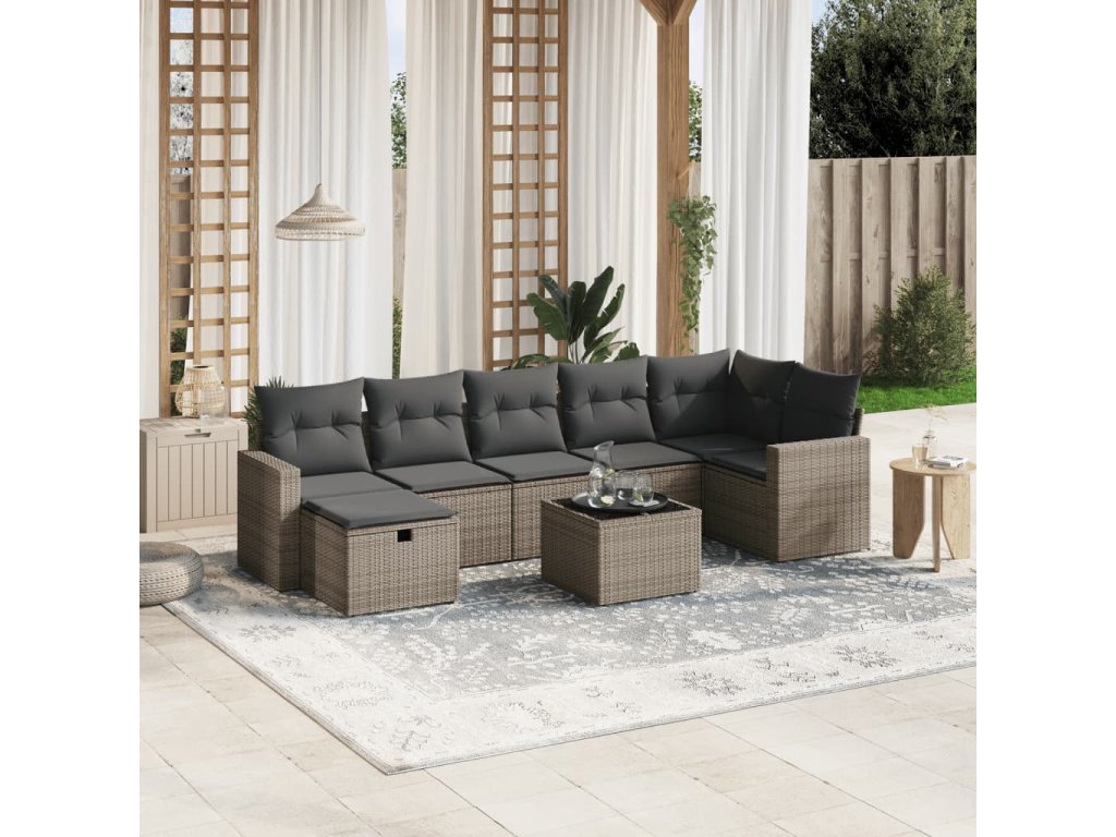 vidaXL 8-dielna záhradná súprava pohoviek s vankúšmi sivá polyratanová