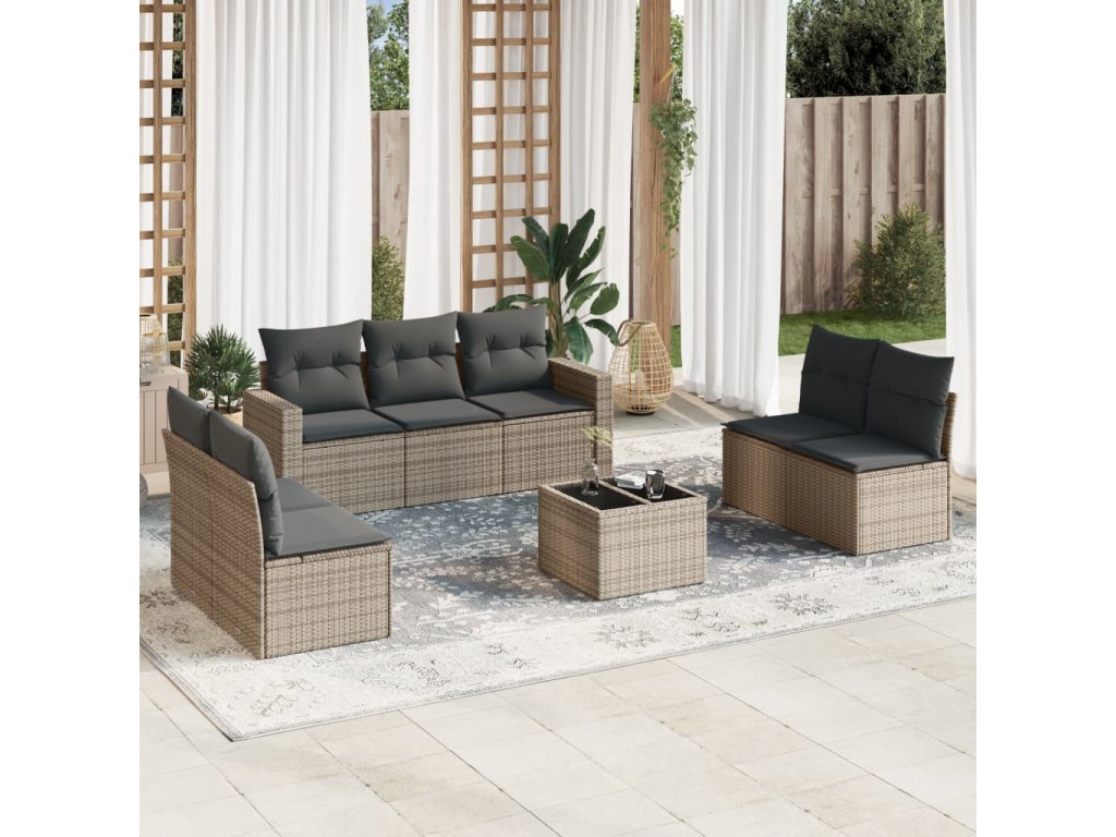 vidaXL 8-dielna záhradná súprava pohoviek s vankúšmi sivá polyratanová