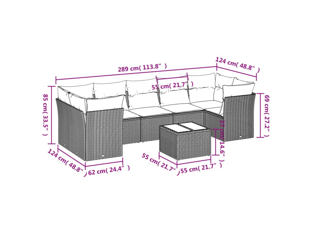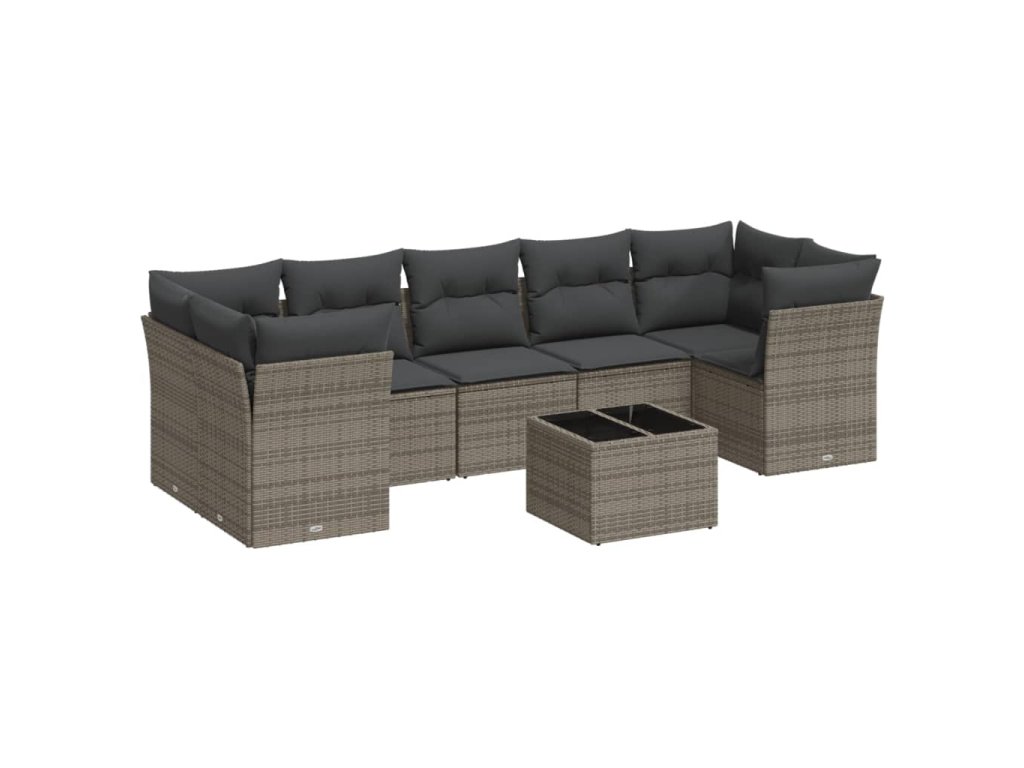 vidaXL 8-dielna záhradná súprava pohoviek s vankúšmi sivá polyratanová