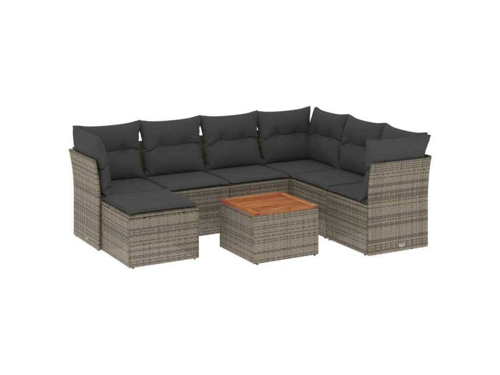 vidaXL 8-dielna záhradná súprava pohoviek s vankúšmi sivá polyratanová