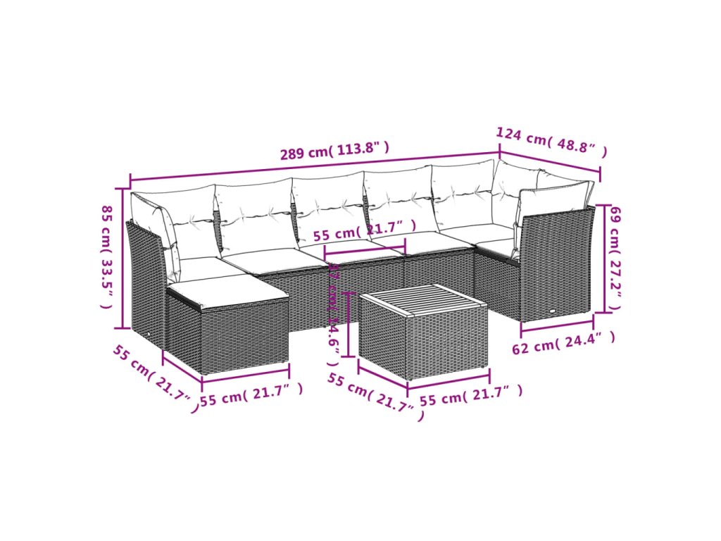 vidaXL 8-dielna záhradná súprava pohoviek s vankúšmi sivá polyratanová
