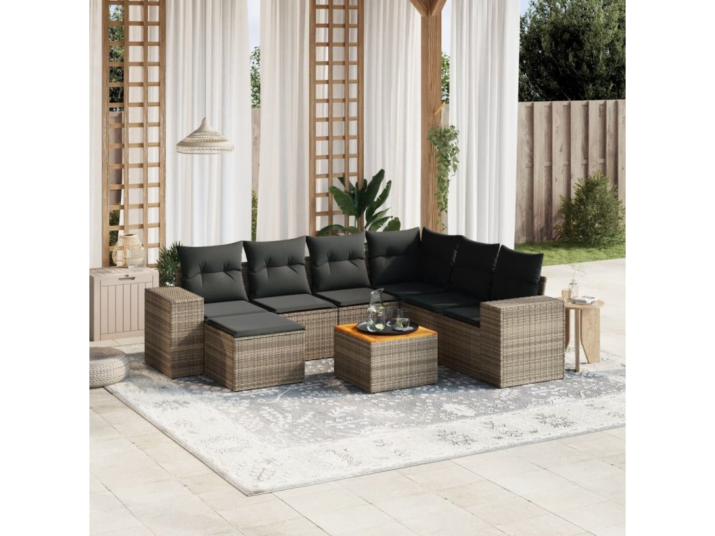 vidaXL 8-dielna záhradná súprava pohoviek s vankúšmi sivá polyratanová