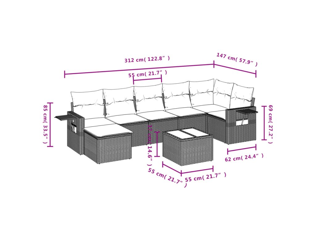 - Modulárny dizajn: Táto súprava vonkajšieho nábytku má modulárny dizajn, vďaka čomu je úplne flexibilná a ľahko sa premiestňuje, takže si môžete vytvoriť prispôsobené usporiadanie vonkajšieho nábytku.