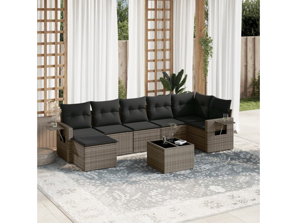vidaXL 8-dielna záhradná súprava pohoviek s vankúšmi sivá polyratanová