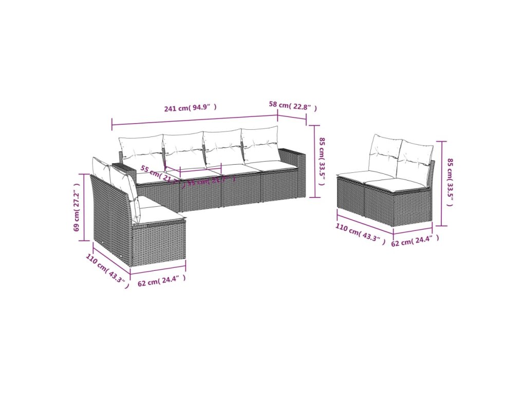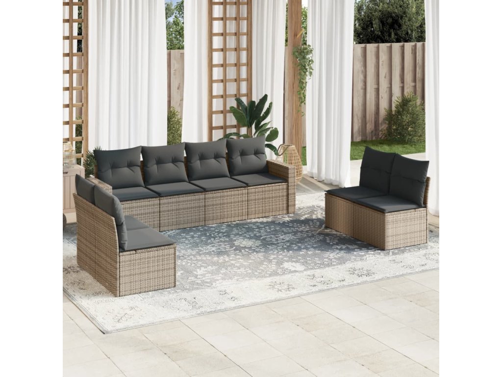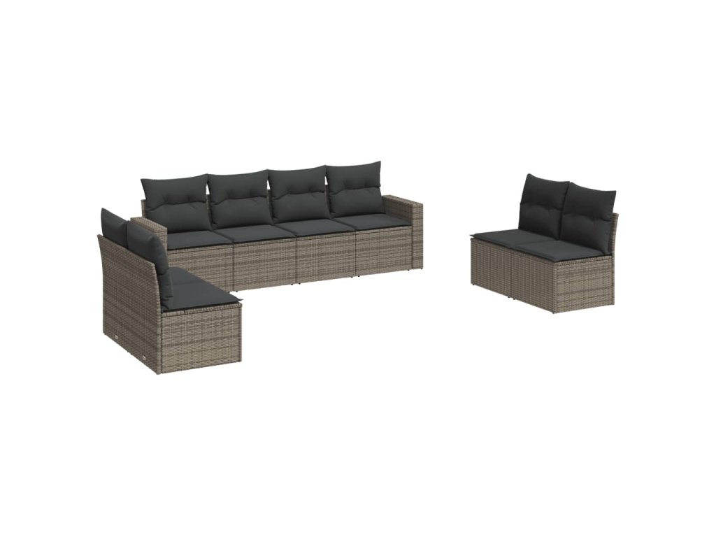 vidaXL 8-dielna záhradná súprava pohoviek s vankúšmi sivá polyratanová