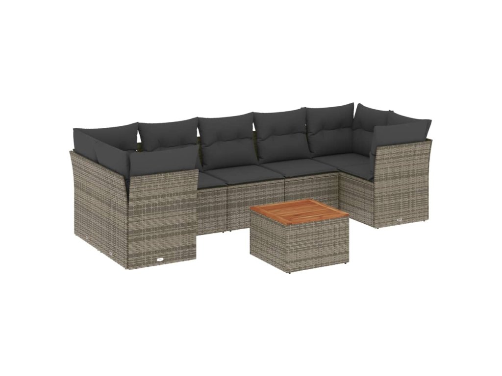vidaXL 8-dielna záhradná súprava pohoviek s vankúšmi sivá polyratanová