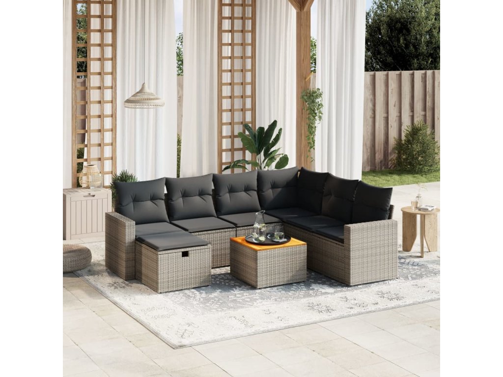 vidaXL 8-dielna záhradná súprava pohoviek s vankúšmi sivá polyratanová