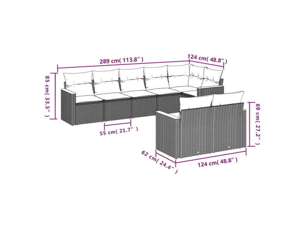 vidaXL 8-dielna záhradná súprava pohoviek s vankúšmi sivá polyratanová
