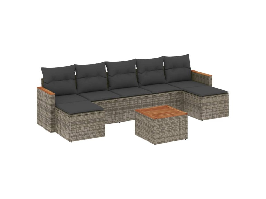 vidaXL 8-dielna záhradná súprava pohoviek s vankúšmi sivá polyratanová