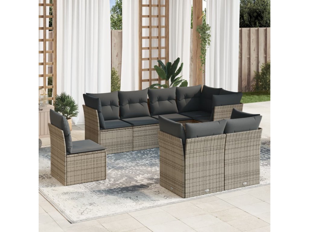 vidaXL 8-dielna záhradná súprava pohoviek s vankúšmi sivá polyratanová
