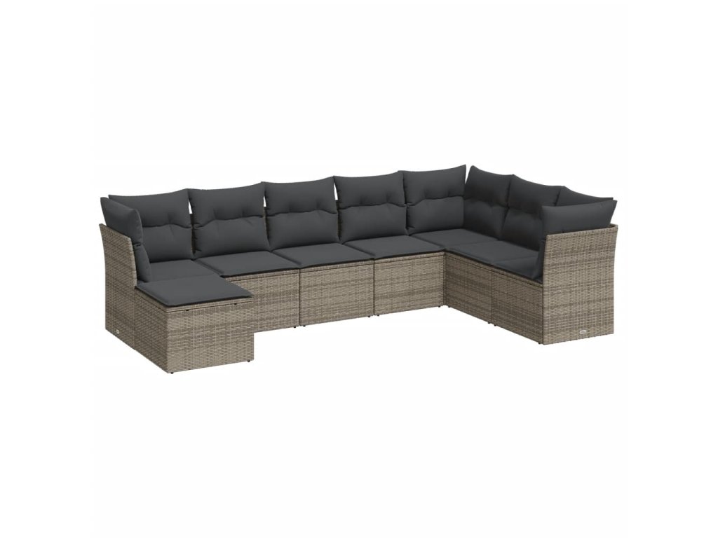 vidaXL 8-dielna záhradná súprava pohoviek s vankúšmi sivá polyratanová