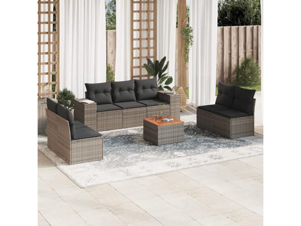 vidaXL 8-dielna záhradná súprava pohoviek s vankúšmi sivá polyratanová