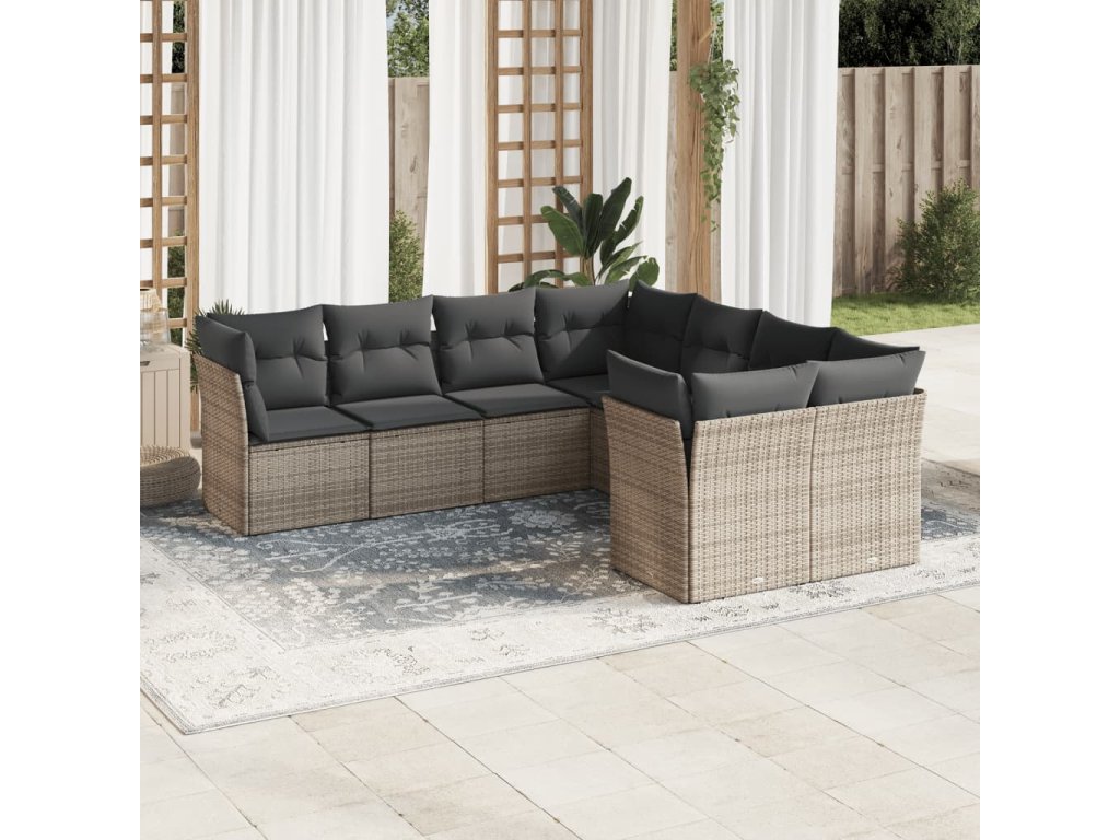 vidaXL 8-dielna záhradná súprava pohoviek s vankúšmi sivá polyratanová