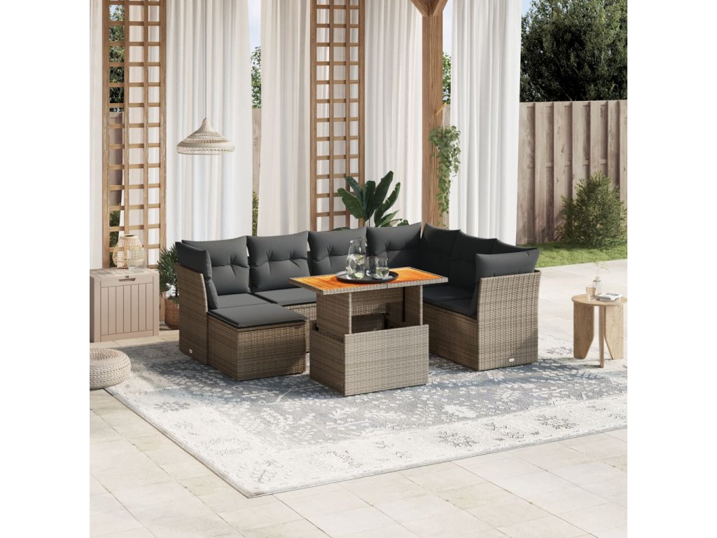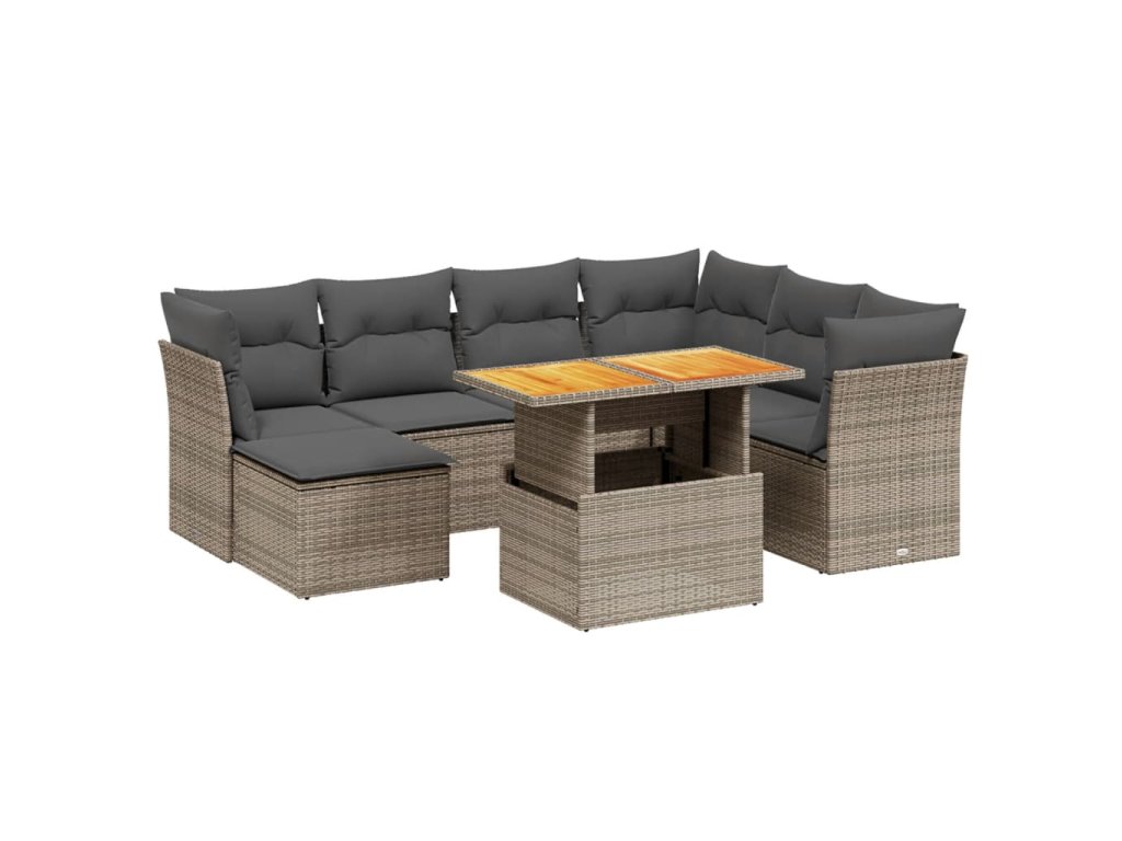 vidaXL 8-dielna záhradná súprava pohoviek s vankúšmi sivá polyratanová