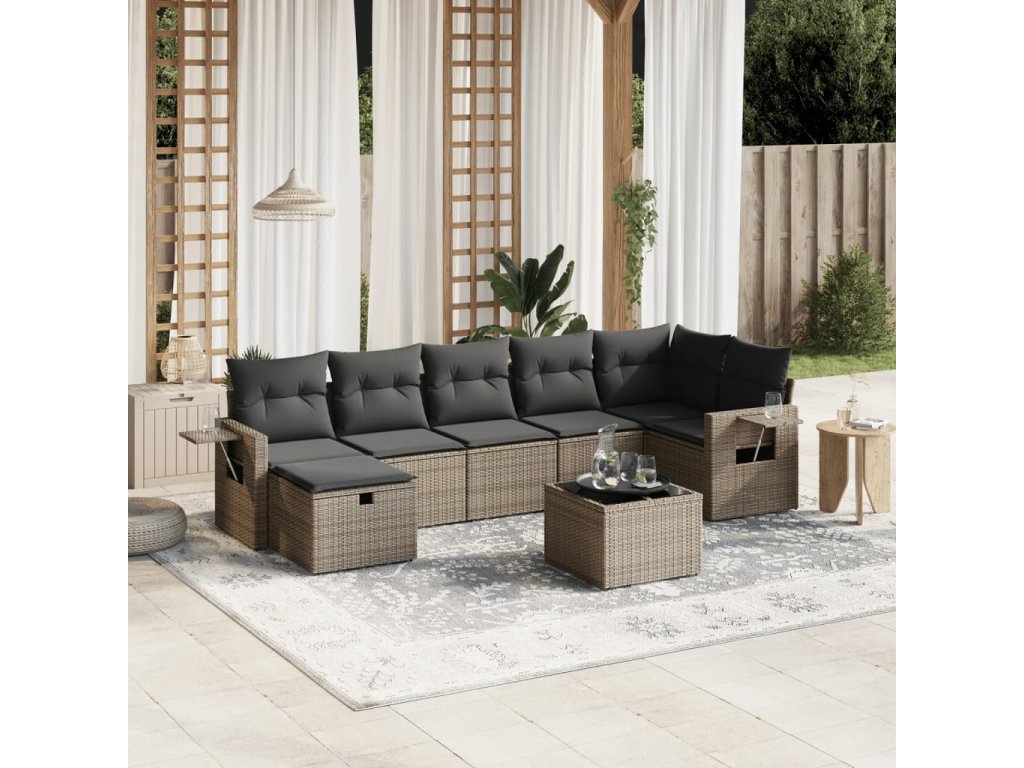 vidaXL 8-dielna záhradná súprava pohoviek s vankúšmi sivá polyratanová