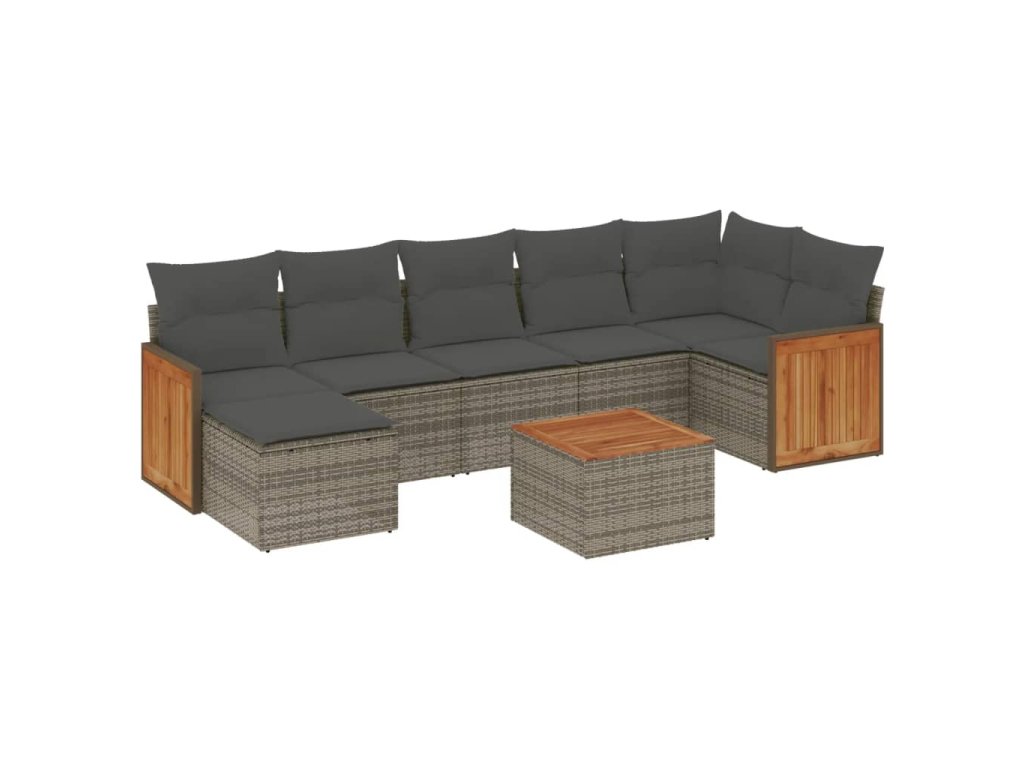 vidaXL 8-dielna záhradná súprava pohoviek s vankúšmi sivá polyratanová