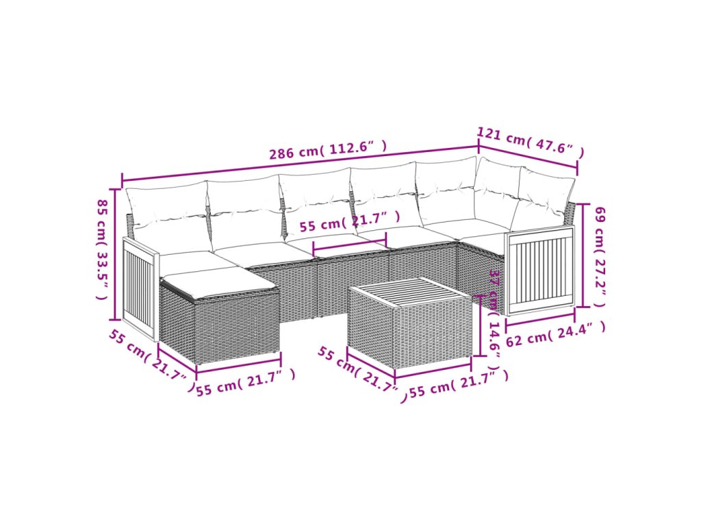- Modulárny dizajn: Táto súprava vonkajšieho nábytku má modulárny dizajn, vďaka čomu je úplne flexibilná a ľahko sa premiestňuje, takže si môžete vytvoriť prispôsobené usporiadanie vonkajšieho nábytku.