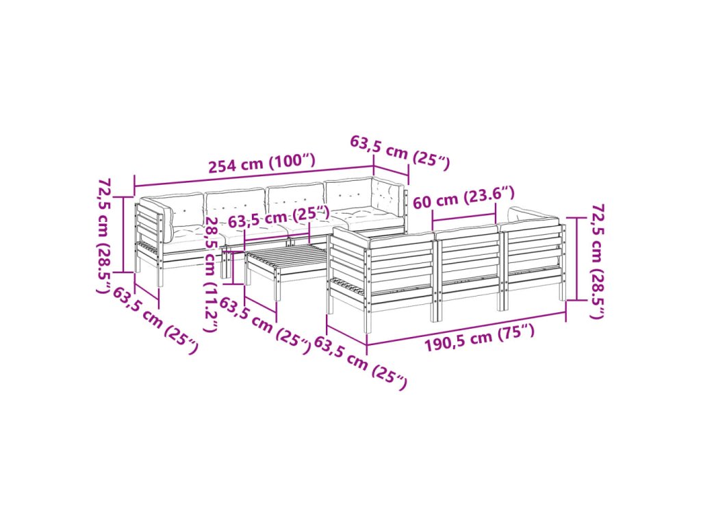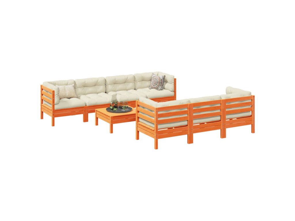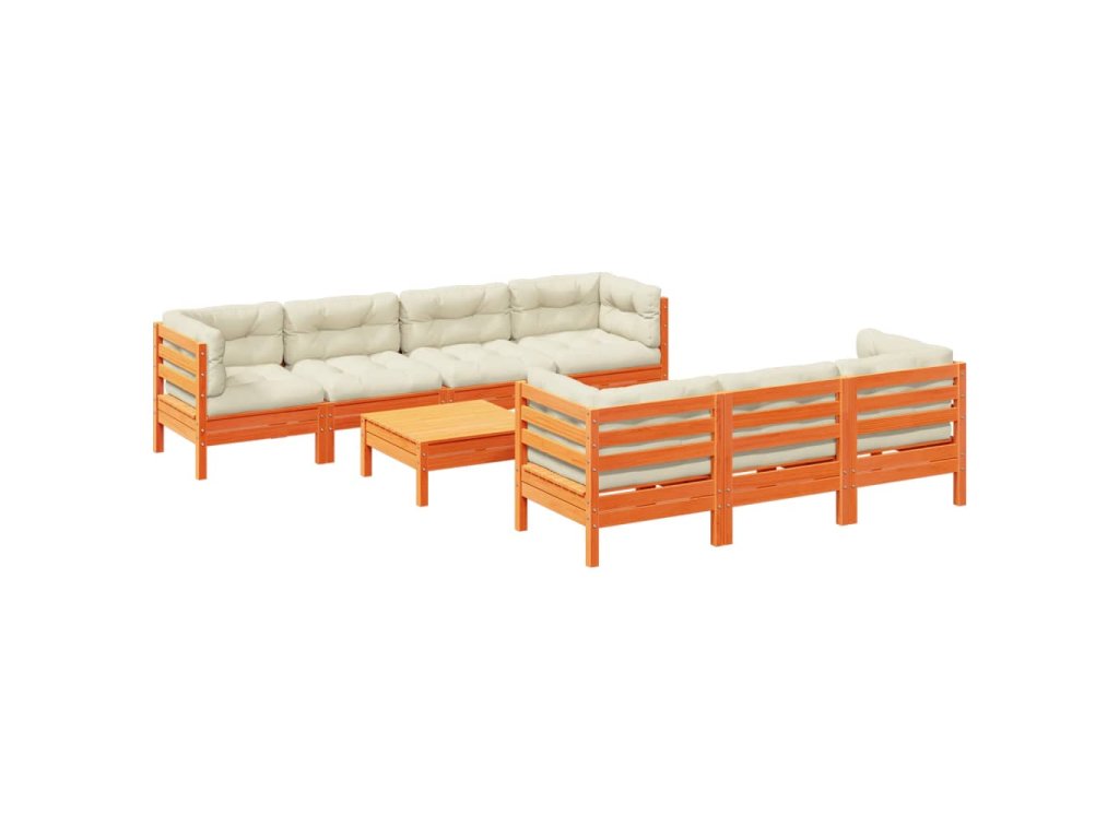 vidaXL 8-dielna záhradná súprava s podložkami, voskovo hnedá, borovica