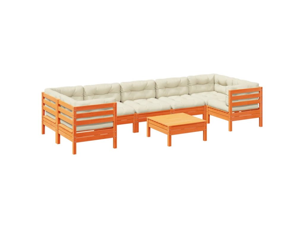 vidaXL 8-dielna záhradná súprava s podložkami, voskovo hnedá, borovica