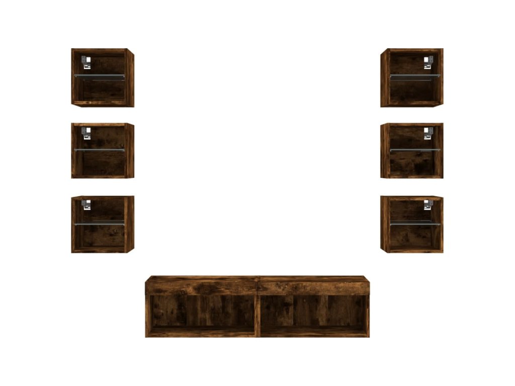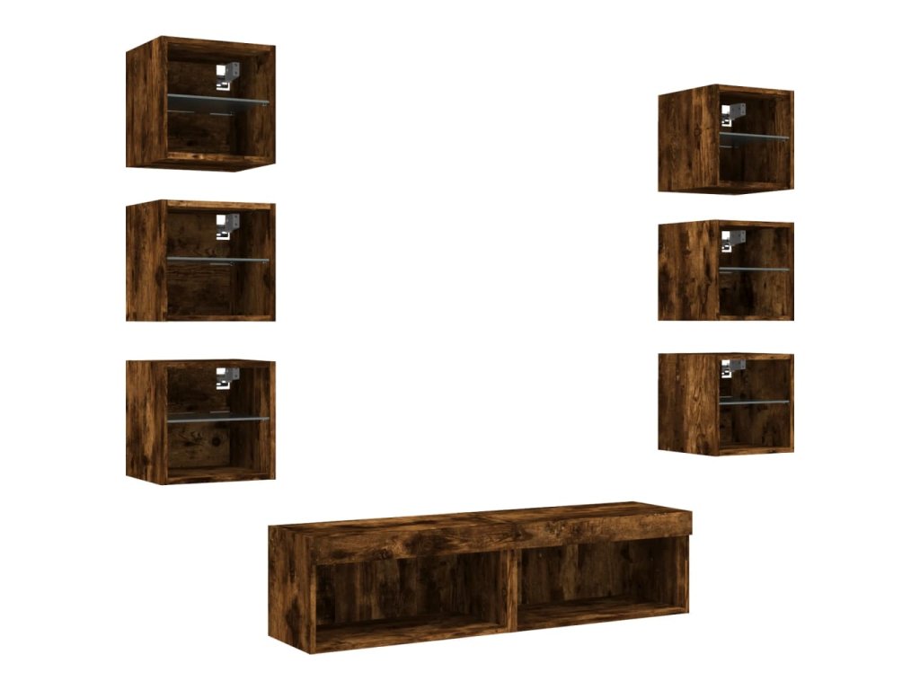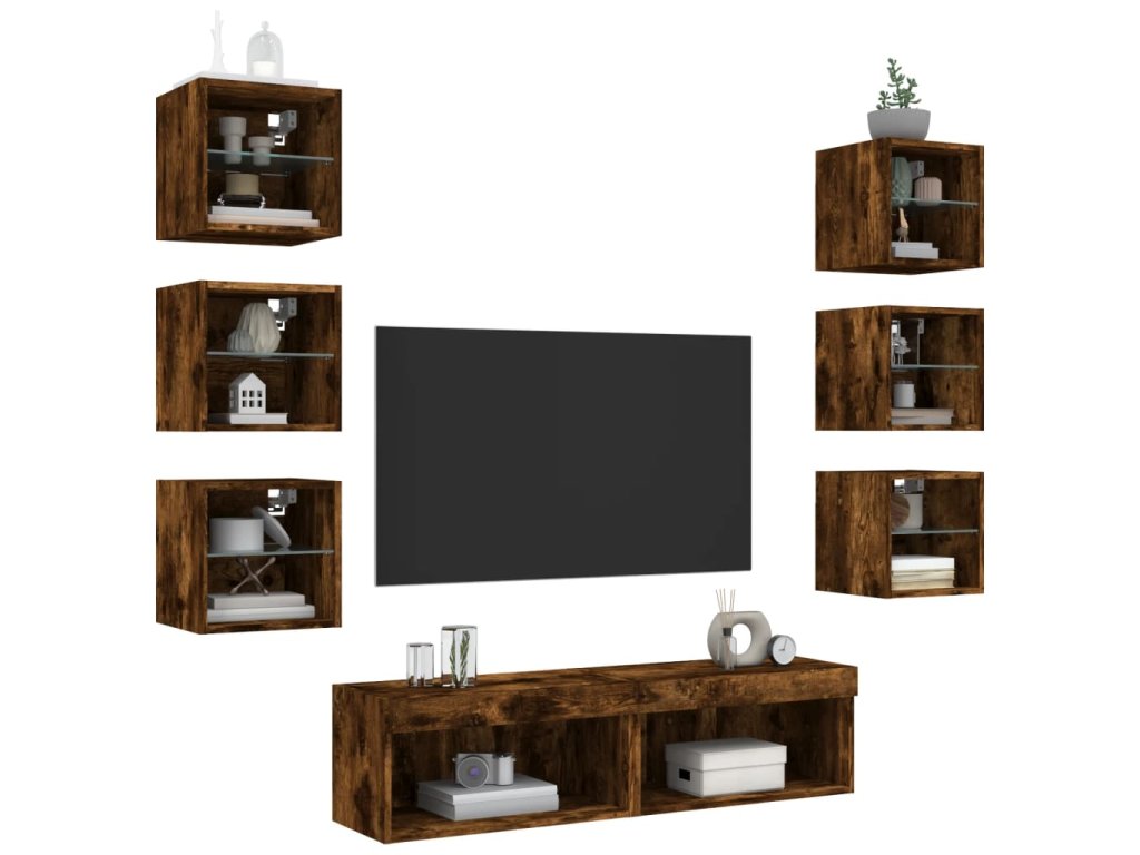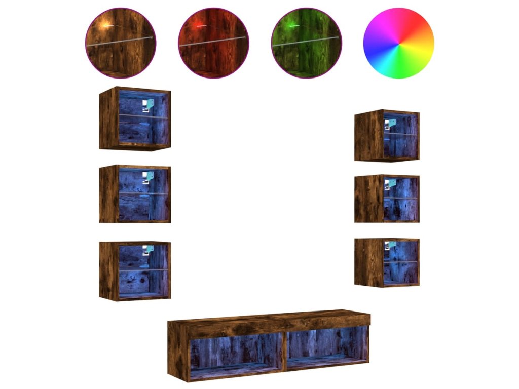 vidaXL 8-dielne TV nástenné skrinky s LED dymový dub kompozitné drevo