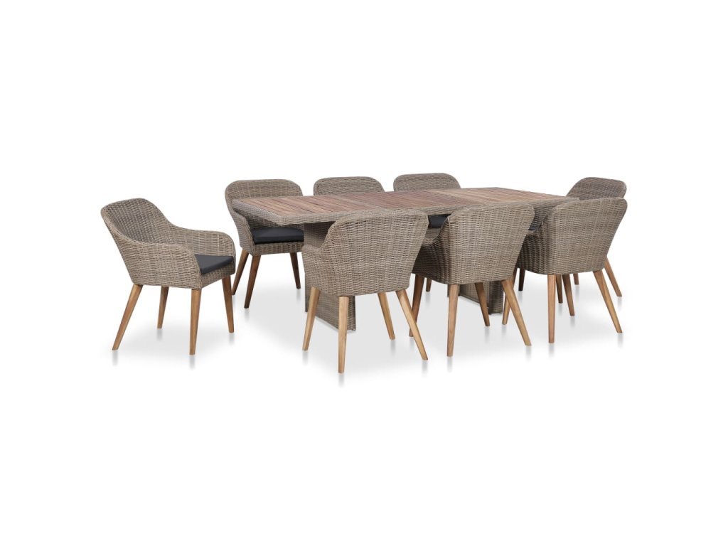 vidaXL 9-dielna vonkajšia jedálenská súprava s podložkami polyratan