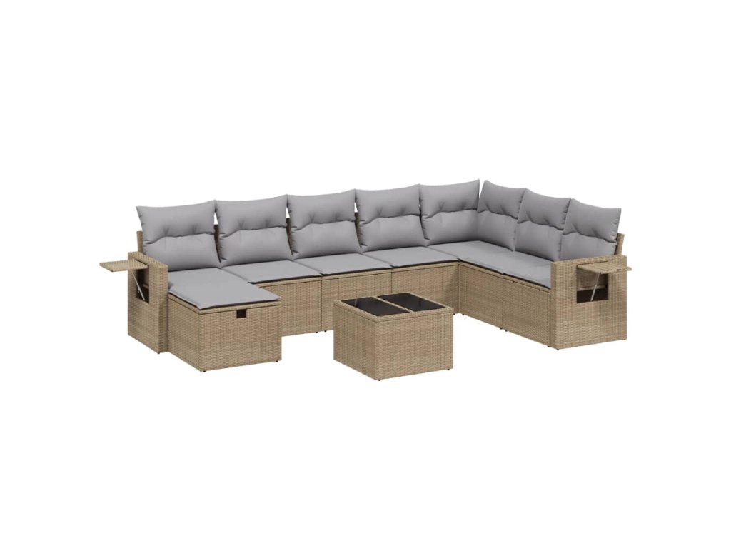vidaXL 9-dielna záhr. jedálenská sada s vankúšmi mix béžovej polyratan