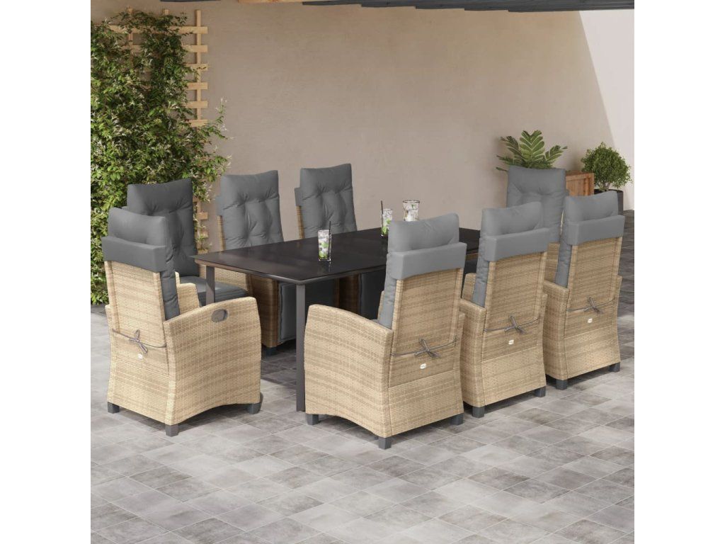 vidaXL 9-dielna záhr. jedálenská sada s vankúšmi mix béžovej polyratan