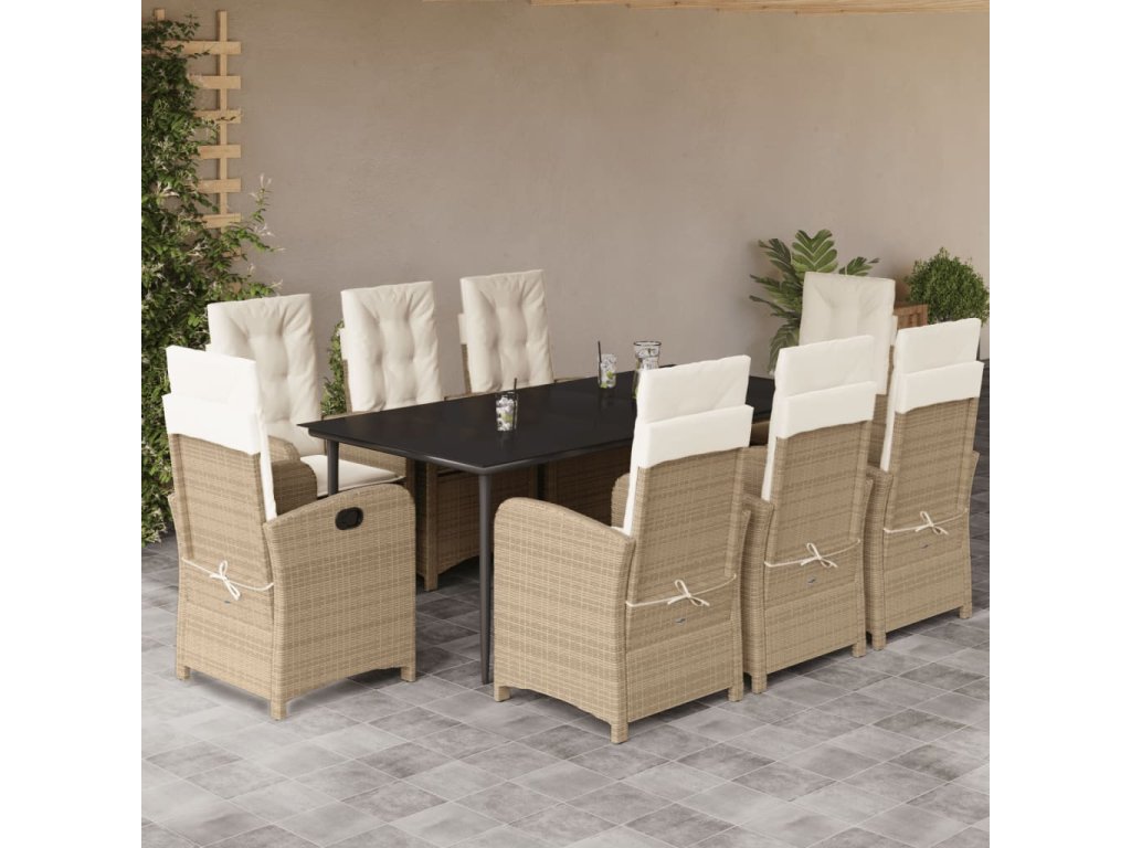 vidaXL 9-dielna záhr. jedálenská súprava s vankúšmi béžová polyratan