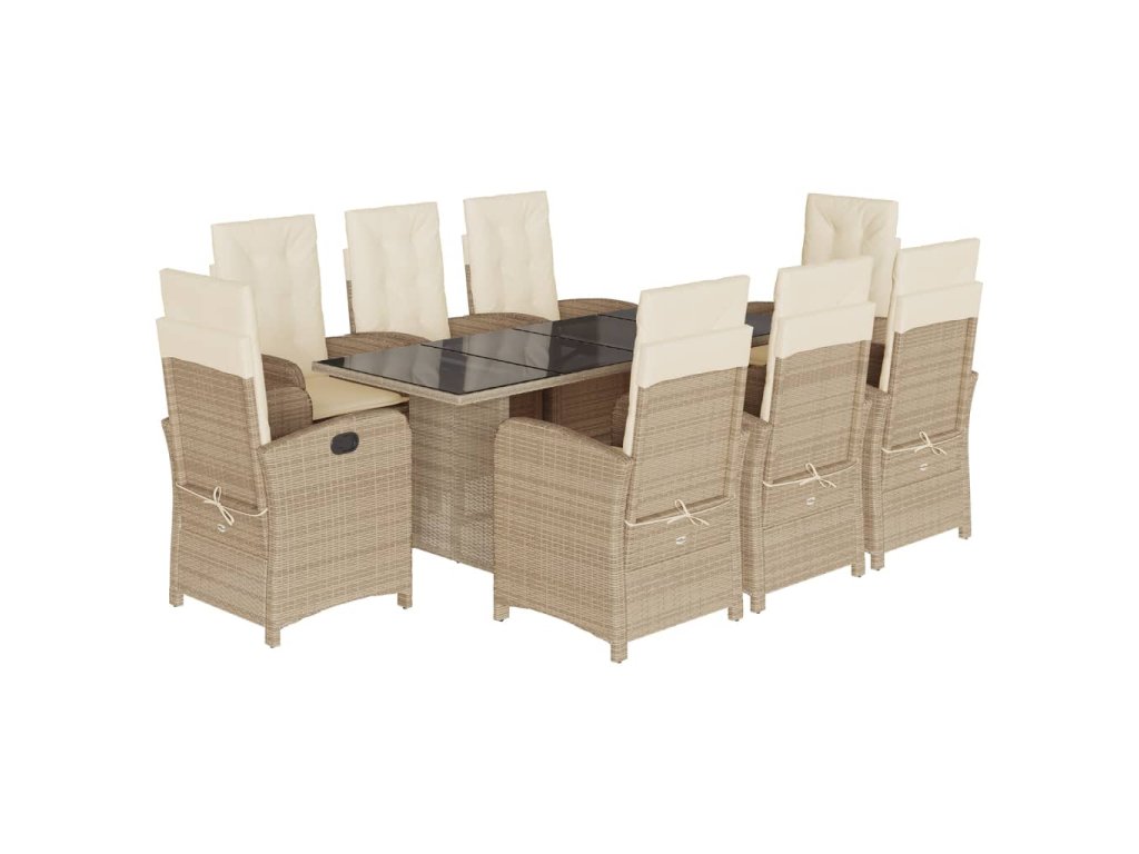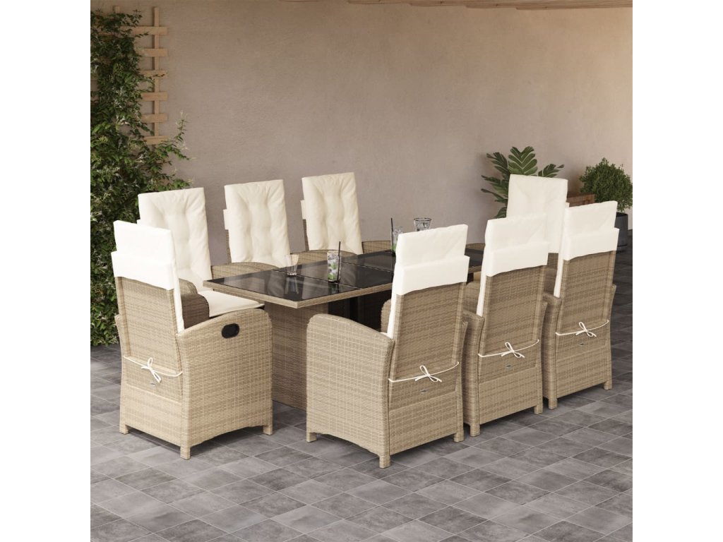 vidaXL 9-dielna záhr. jedálenská súprava s vankúšmi béžová polyratan