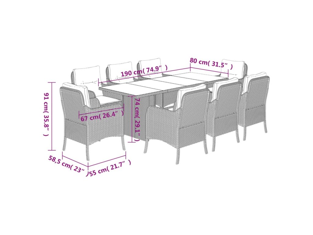 vidaXL 9-dielna záhr. jedálenská súprava s vankúšmi béžová polyratan
