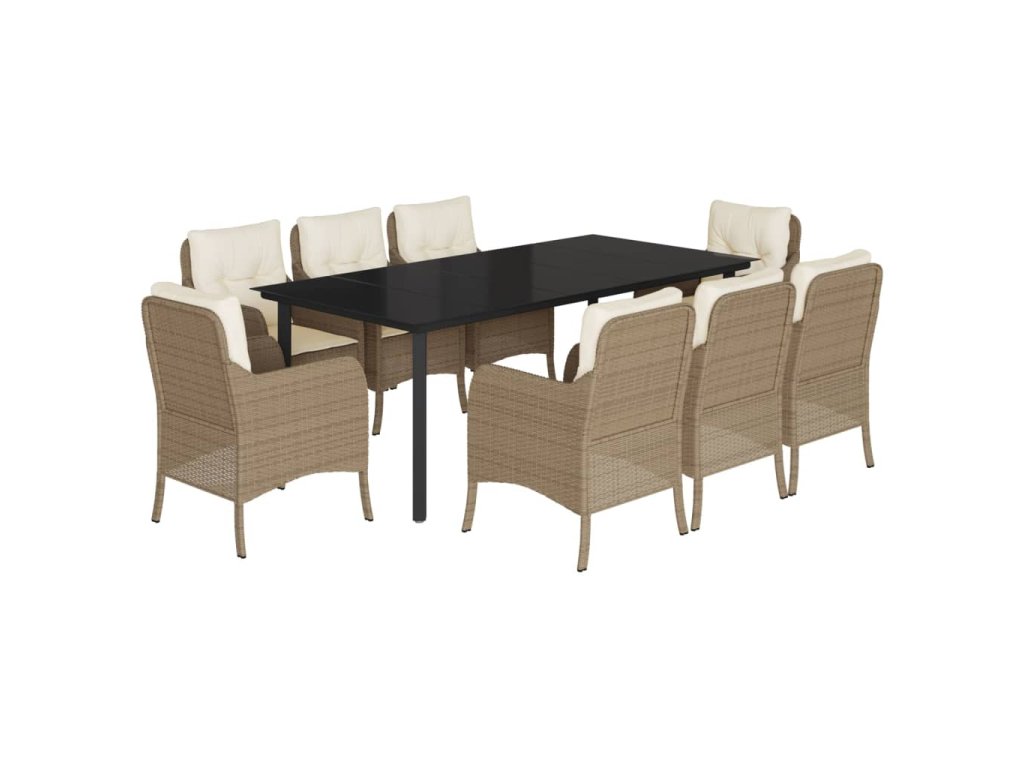 vidaXL 9-dielna záhr. jedálenská súprava s vankúšmi béžová polyratan