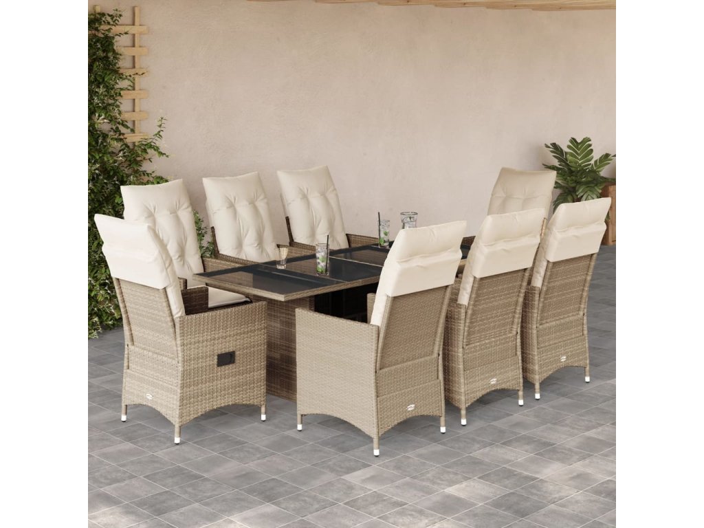 vidaXL 9-dielna záhr. jedálenská súprava s vankúšmi béžová polyratan