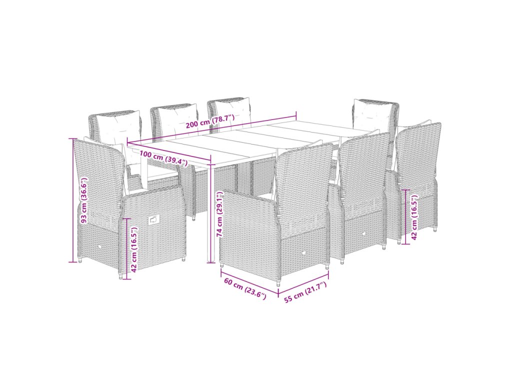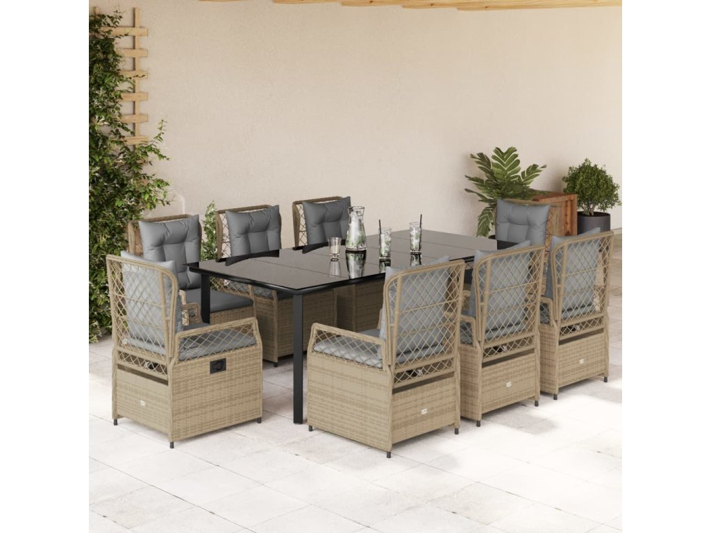 vidaXL 9-dielna záhr. jedálenská súprava s vankúšmi béžová polyratan