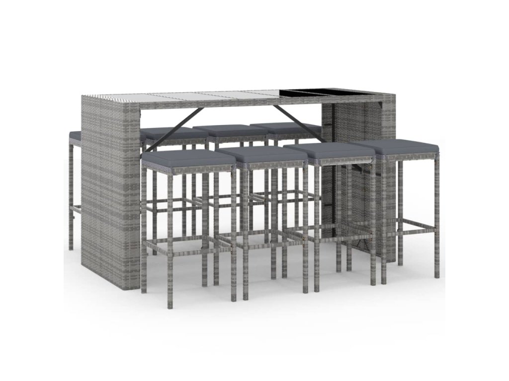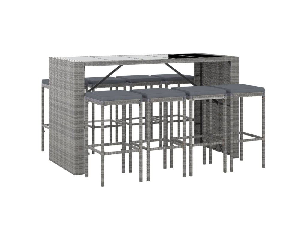 vidaXL 9-dielna záhradná barová súprava s podložkami sivá polyratan