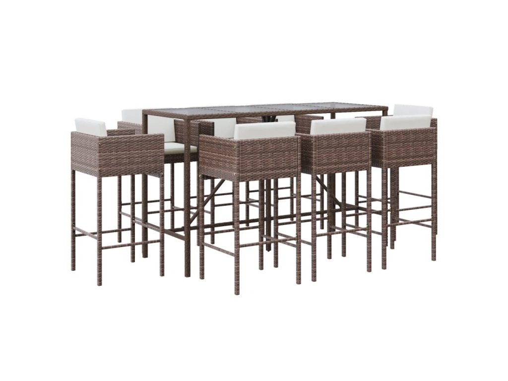 vidaXL 9-dielna záhradná barová súprava s vankúšmi hnedá polyratan