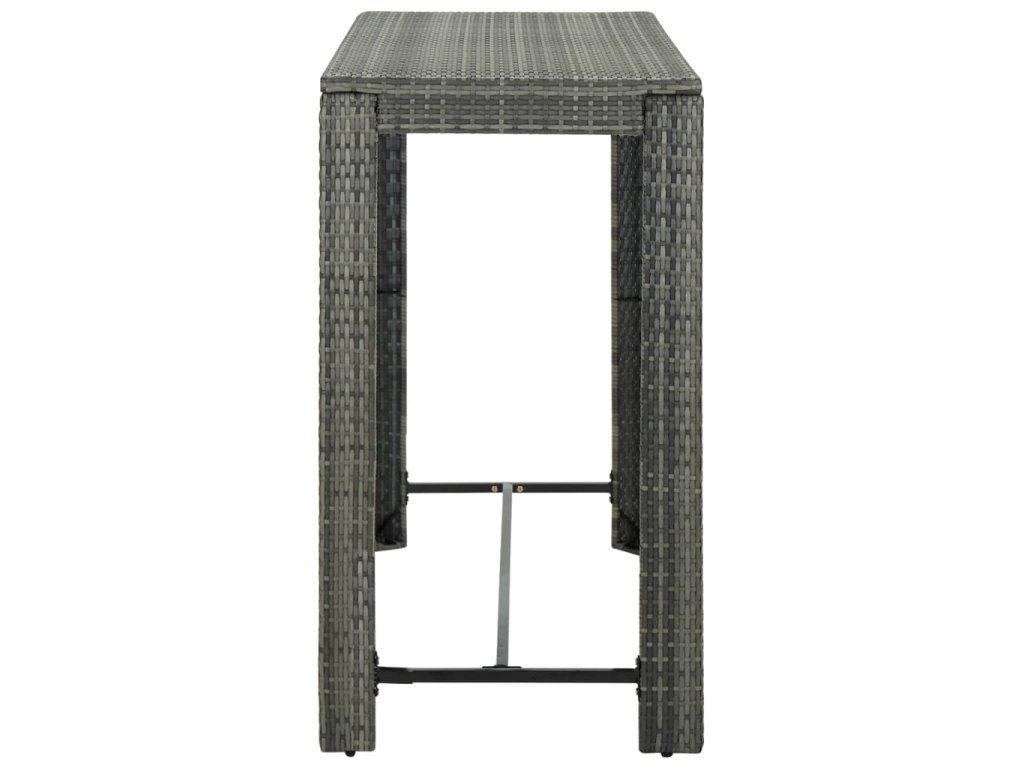 Barový stôl je opatrený oceľovým rámom s práškovanou povrchovou úpravou, vďaka čomu je stabilný a odolný. Stolová doska je ideálna na položenie nápojov, jedla alebo dekoratívnych predmetov. Stoličky majú pevnú konštrukciu z oceľového rámu a sú vyrobené z PE ratanu odolného voči poveternostným vplyvom, čo zaisťuje ich stabilitu a ľahké premiestňovanie. Vankúš a opierka nôh tiež zvyšujú pohodlie pri sedení na stoličke. Poťah vankúša z polyesteru so skrytým zipsom uľahčuje čistenie.
