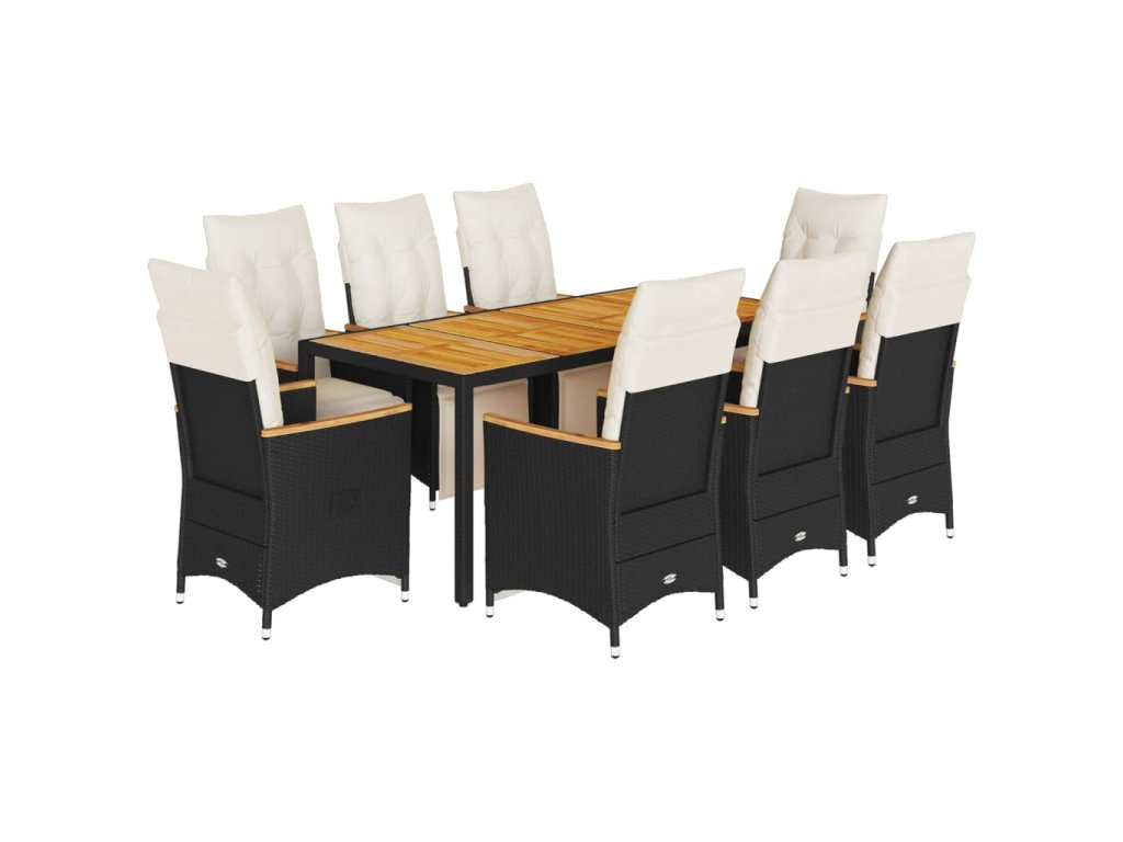 vidaXL 9-dielna záhradná bistro súprava s vankúšmi čierna polyratan