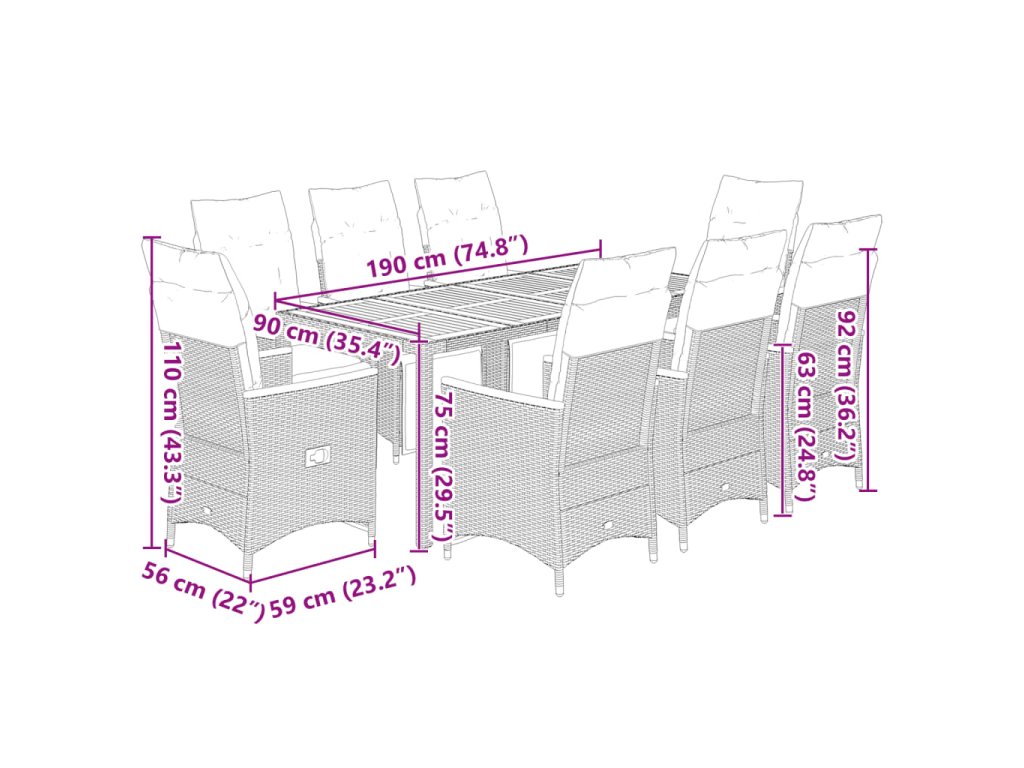 - Materiál: PE ratan, oceľ, masívne akáciové drevo s olejovým náterom