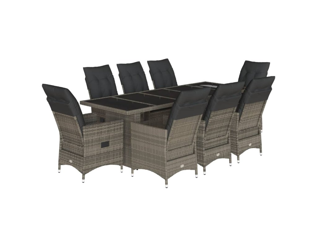 vidaXL 9-dielna záhradná bistro súprava s vankúšmi sivá polyratan