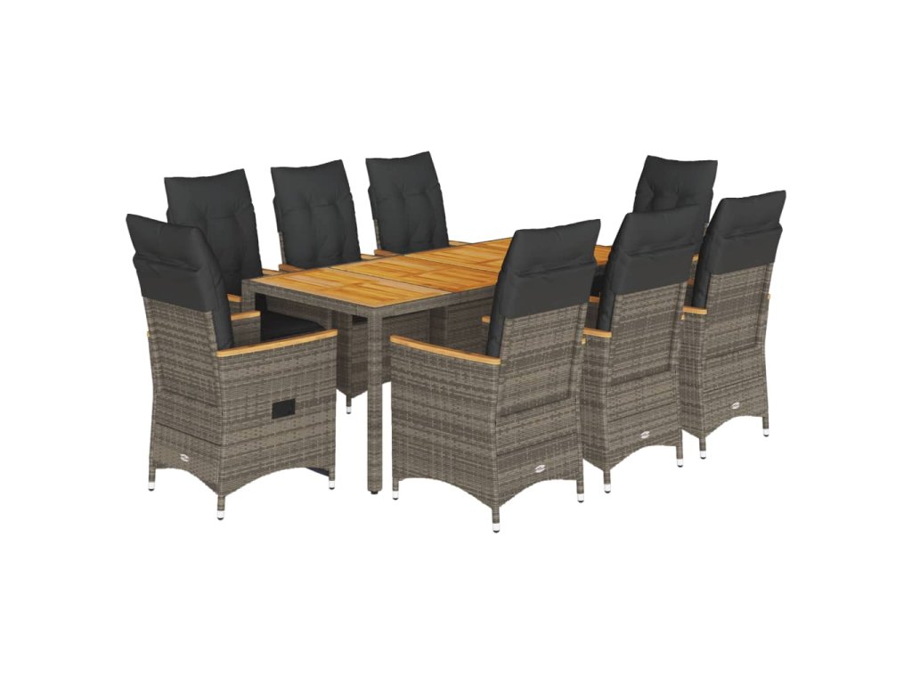 vidaXL 9-dielna záhradná jedálenská sada s podložkami sivá polyratan