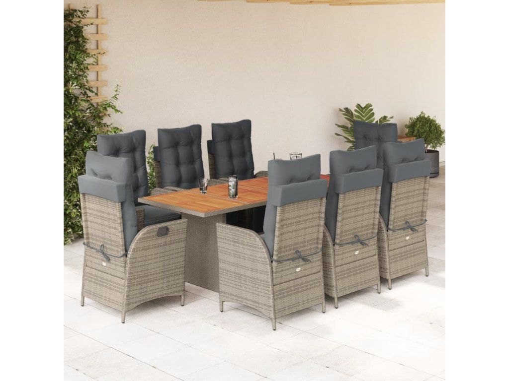 vidaXL 9-dielna záhradná jedálenská sada s podložkami sivá polyratan