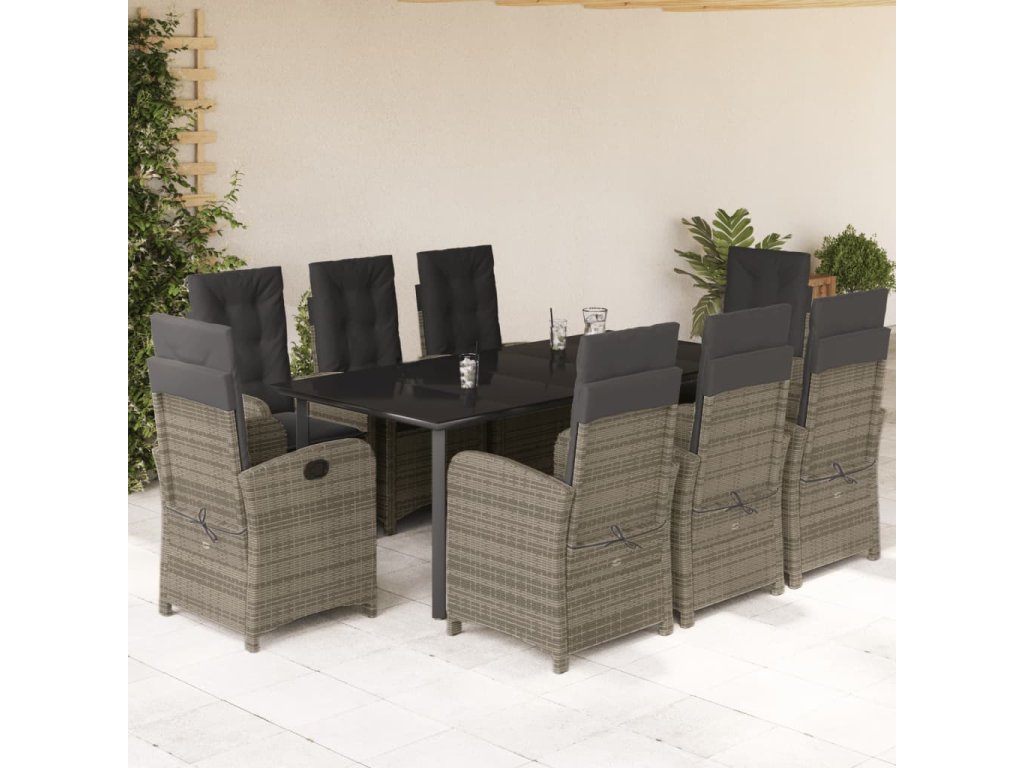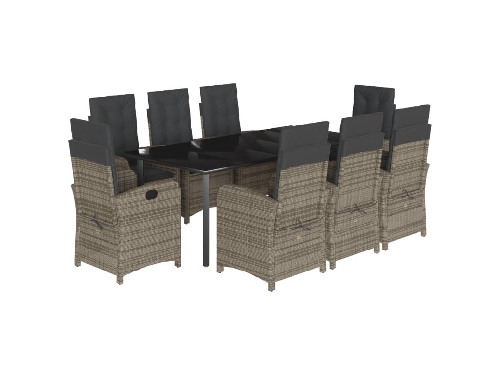 vidaXL 9-dielna záhradná jedálenská sada s podložkami sivá polyratan