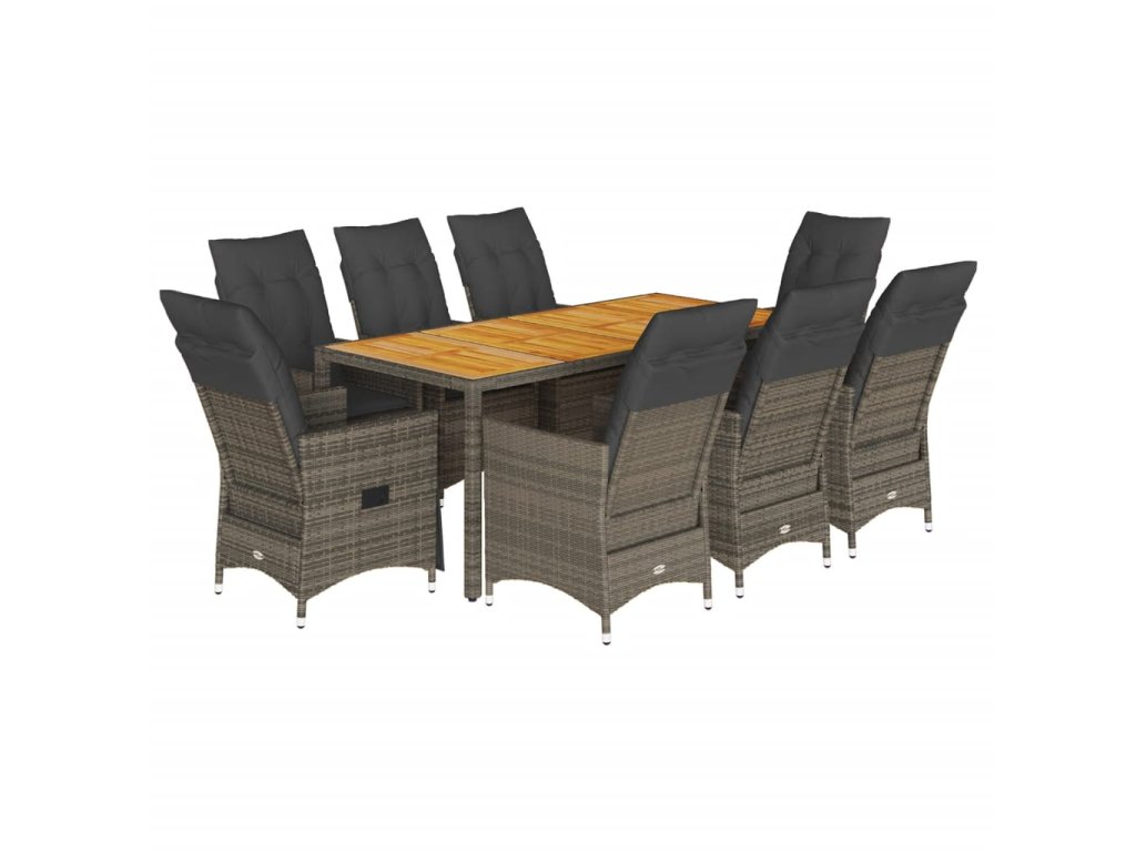 vidaXL 9-dielna záhradná jedálenská sada s podložkami sivá polyratan